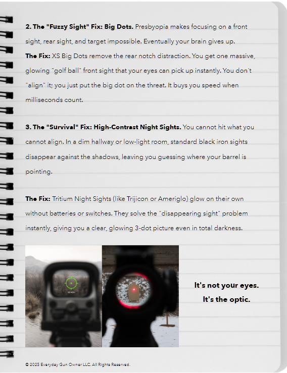 Small gear upgrades can make your front sight and red dot come into focus instantly — even if your eyes aren’t what they used to be.